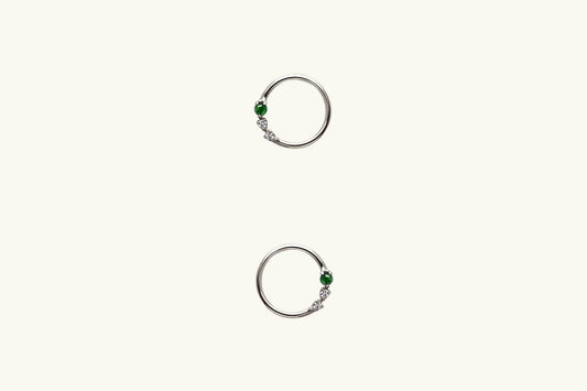 Emerald and Diamond Open Circle Earrings