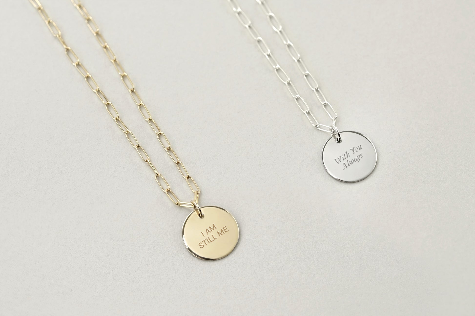 A timeless disc necklace engraved with the words that mean the most to you. The Emblem Classic transforms your chosen mantra, name, or meaningful phrase into a personal piece of jewelry designed to be worn close to the heart. Minimal, modern, and made to last, it becomes a quiet reminder of who you are and what grounds you.