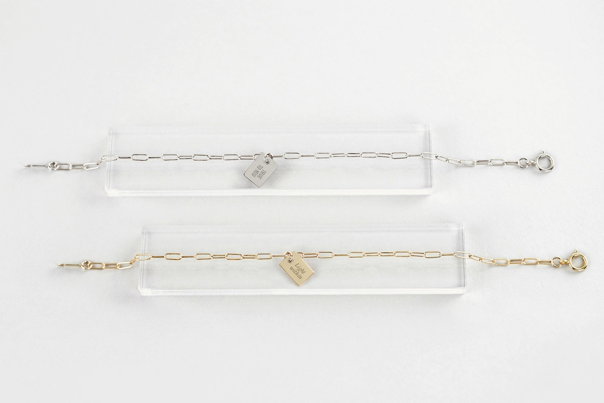 The Whisper Message Charm Bracelet turns your chosen message into a delicate, finely engraved charm designed to rest softly on the wrist. A name, a reminder, a private vow, or a few meaningful words captured on a petite pendant that feels light, intimate, and deeply personal.