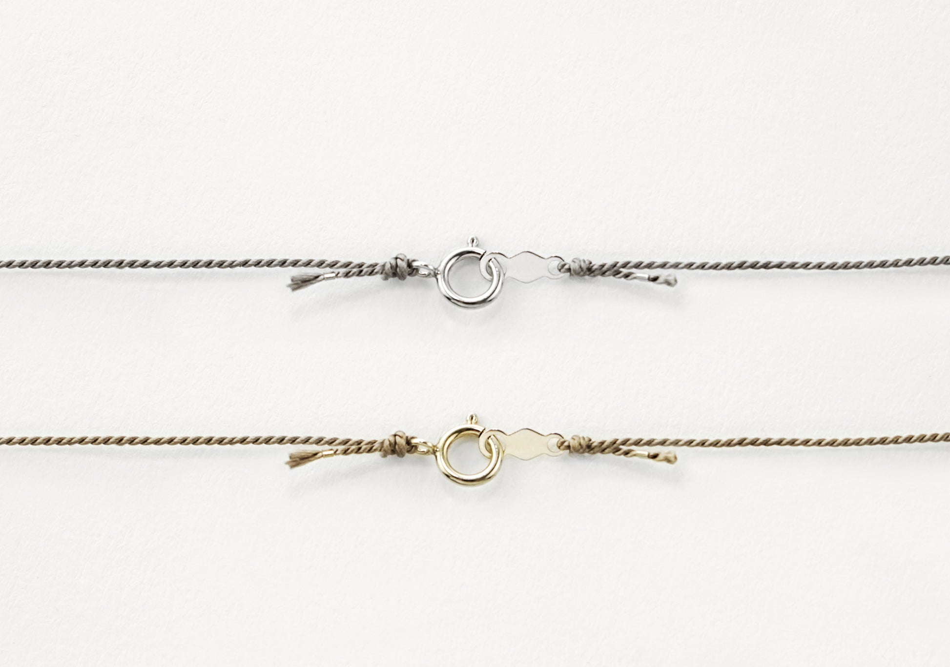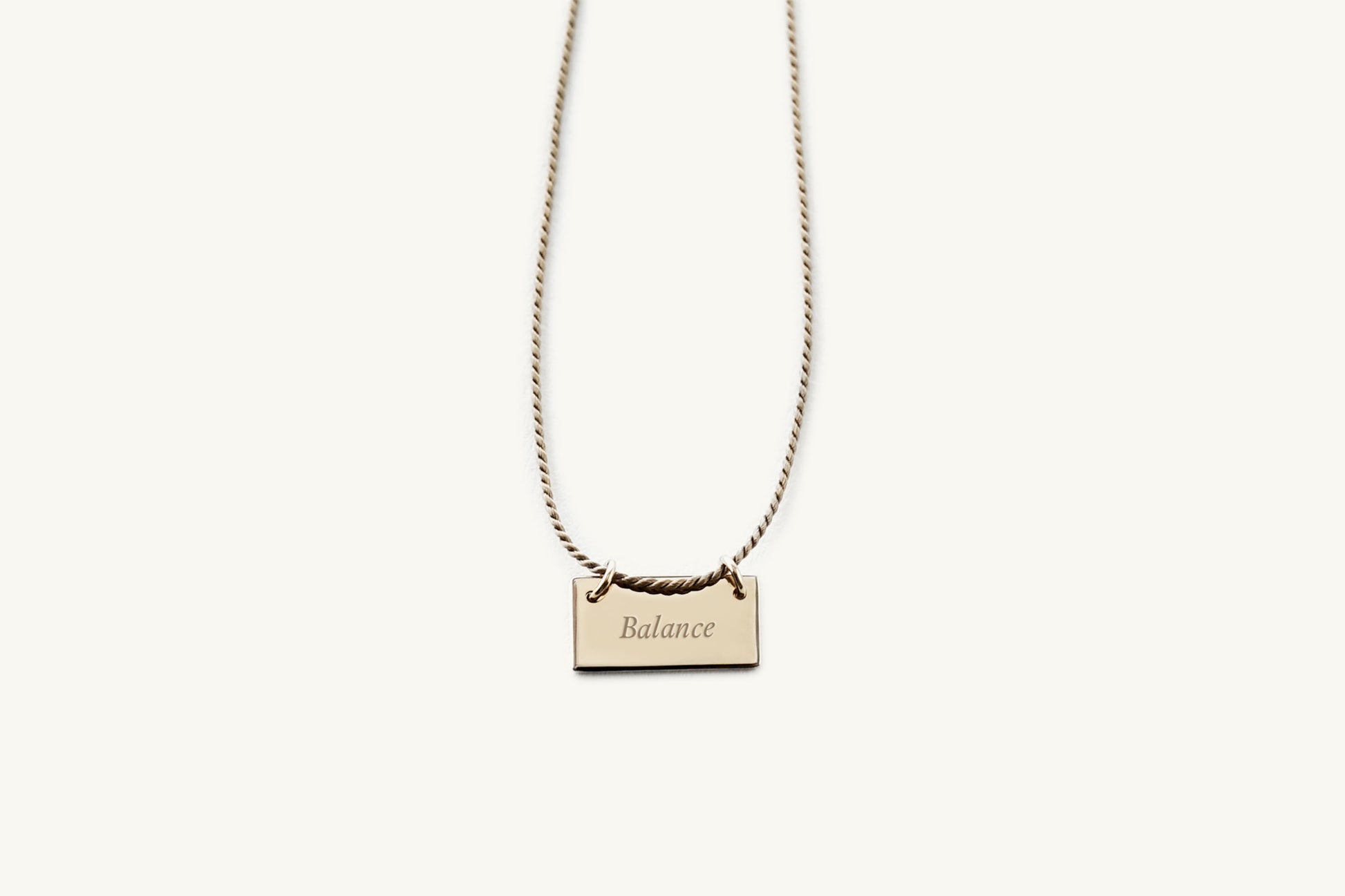 Designed for personal phrases, meaningful dates, and layered sentiments, this rectangular bar allows your message to live as one continuous thought, engraved with clarity and balance so even longer expressions remain beautifully legible. The silk cord adds a softer dimension, fluid and gentle against the skin, moving with you in a more intimate and relaxed way.