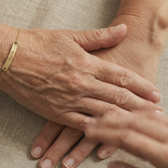 A minimalist arc of gold, inscribed with the words you keep closest—wrapped gently around your wrist.